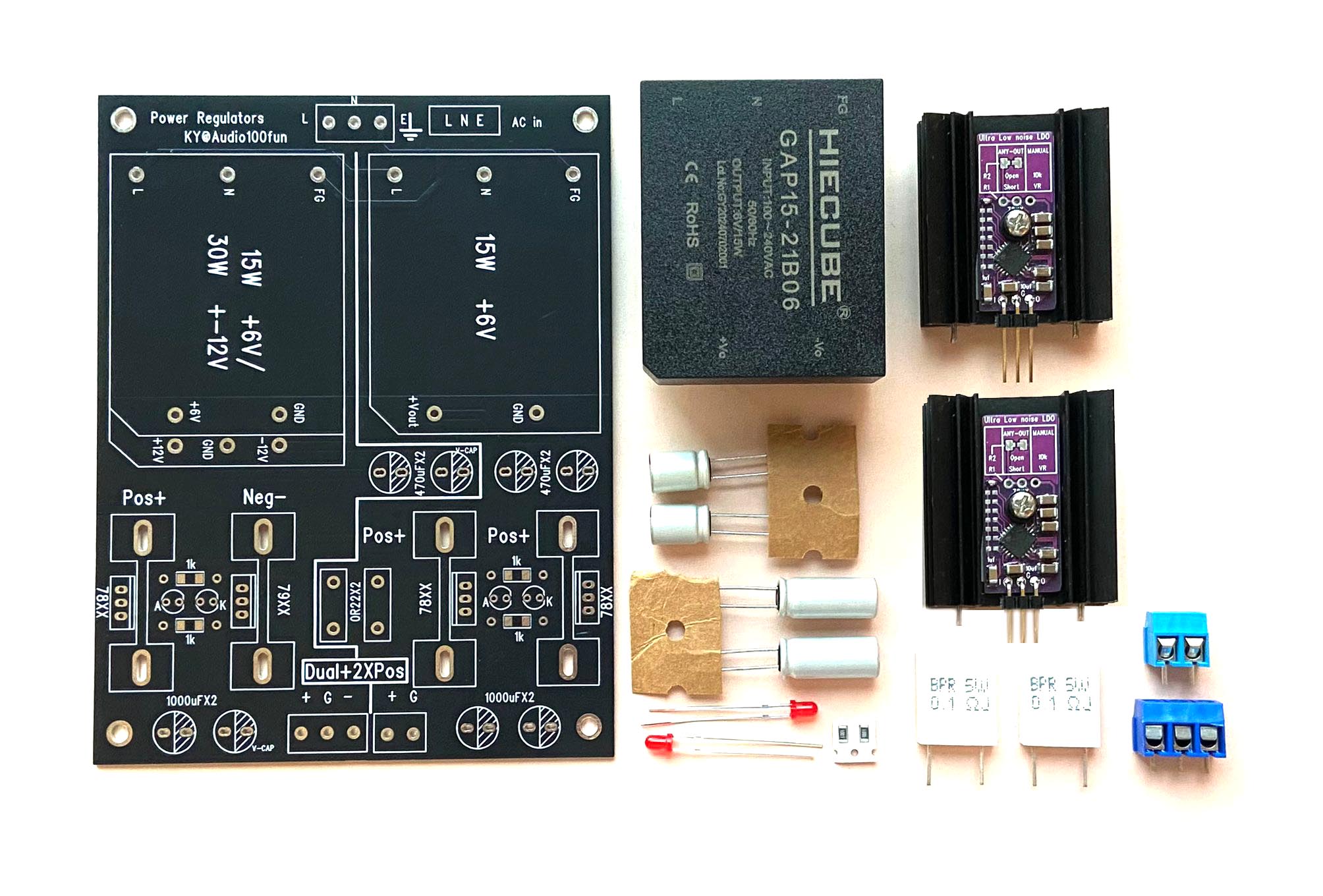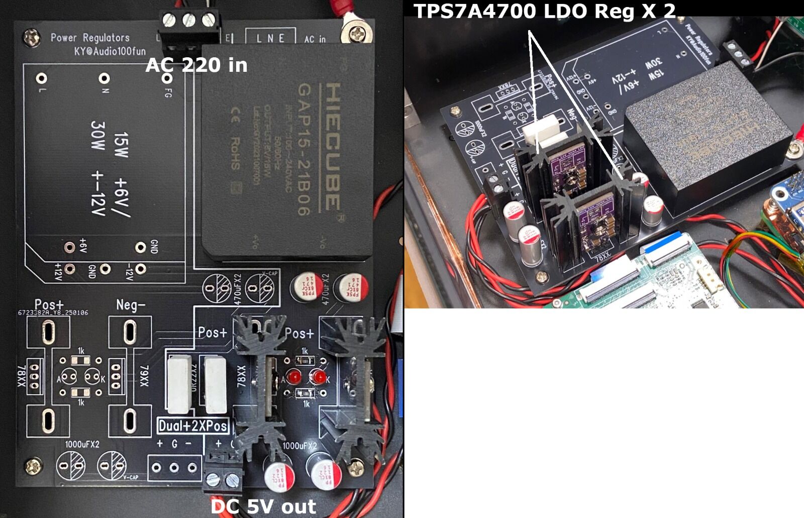 上圖是4A Power Regulators 穩壓板套件, (未加上解碼器用的Regulators, 解碼電源牛和小零件)